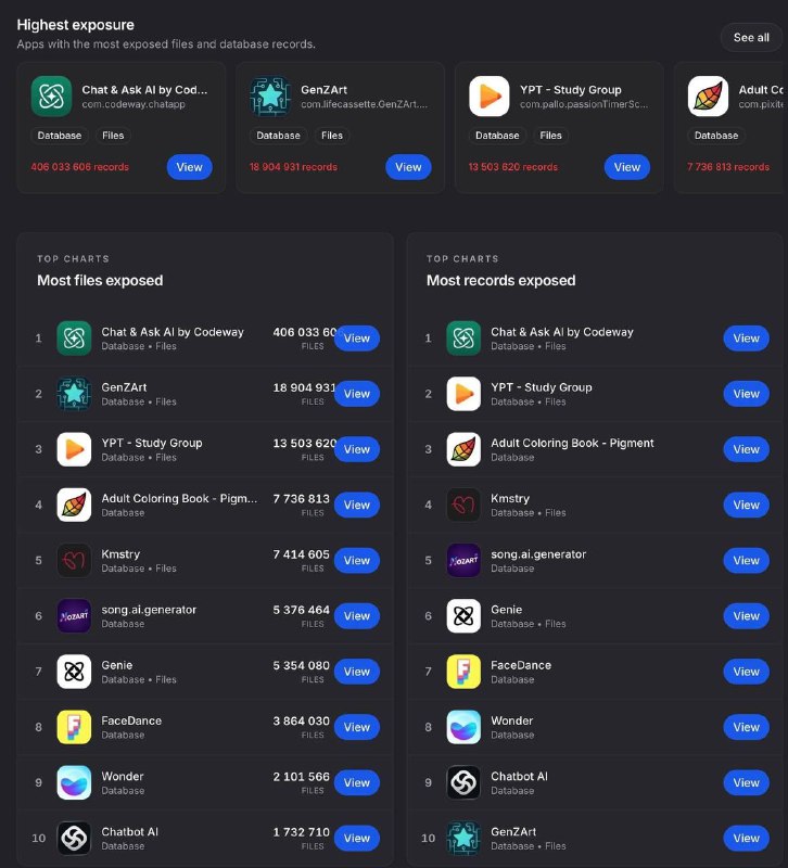 В компании Firehound проверили 198 приложений, и 196 из них сливали данные. В открытый доступ попали имена, почта, история чатов и другая личная информация.
