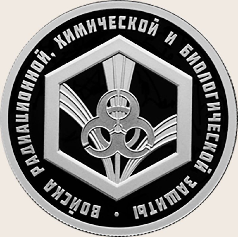 На двух других монетах из этой серии изображены эмблема войск РХБЗ, военный в защитном костюме с прибором химической разведки и машина ТМС-65У.